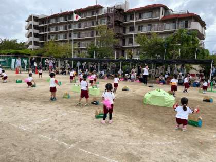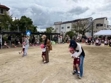 幼稚園にいる虫たちになって遊びました。大きなあみを持った先生に捕まることもなく、元気に走り回っていました。 最後は自分の好きな虫になって、遊びました。お家の人とは猿、コアラ、ペンギンの親子になって遊びました。ペンギン歩きは大変!でしたね。