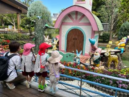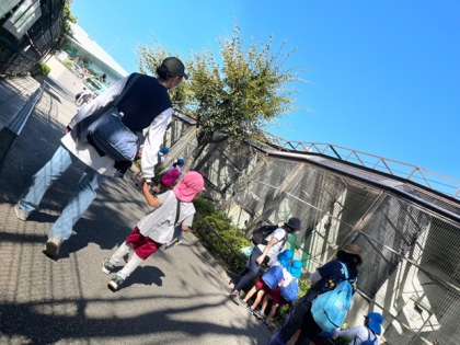 保護者同伴園外保育で、天王寺動物園に行きました。お家の人とシールラリーの用紙を持って、動物を見て回りました。