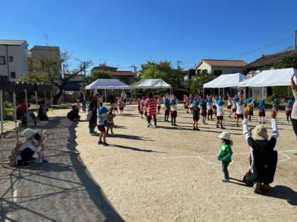今日は園庭開放に未就園の友達が来てくれました。運動会の遊びを見せたり、一緒に体操やかけっこをしました。あお組は、運動会の後もいろいろな運動遊びにすすんでチャレンジしているので、今日、連続逆上がりに数人が成功し、驚きました。継続は力なりですね。最後はパラバルーンの通り抜けもしてもらいました。身体を動かすには気候もよく、笑顔がたくさんの楽しい時間となりました。