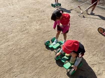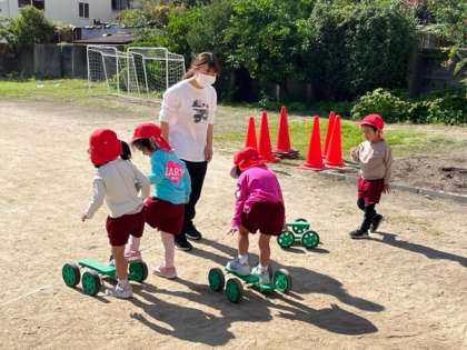 あお組は「できるようになったから見てて」「すごいやろ」と、いろいろなことに挑戦しています。あか組は「これ、ちょっと難しいねんな」「でもやってみよう!」と挑戦することが多くなりました。