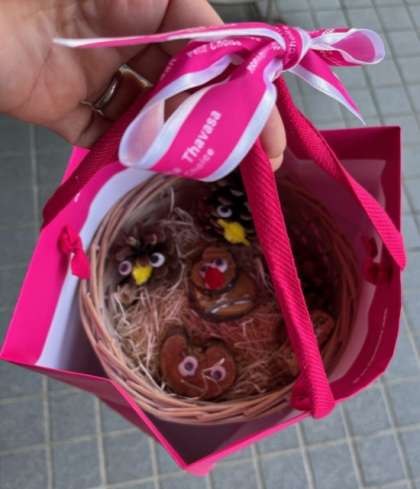 自然物の作品 公開日 2022/11/08 更新日 2022/11/08 園の様子 マツボックリや輪切りの木を使って、動物を作りました。大事なお客様が幼稚園を見に来られると話すとプレゼントしようとなり、素敵な袋を見つけ、「このリボンもつけたらいいと思う!」とお客様を待っていました。かわいいねと言っていただき、喜んでいました。飾っていただけていると嬉しいです。 いいね(0)