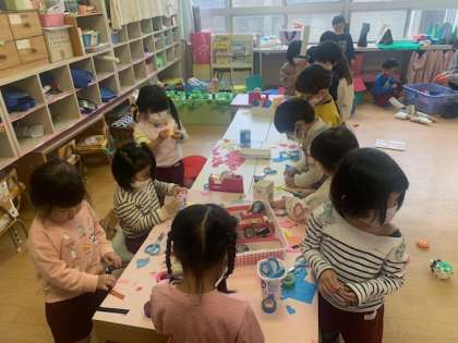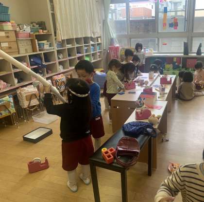 子ども展覧会が終わってからも、子ども達の製作意欲は収まらず、ハサミやテープを使っていろいろなものをつくって楽しんでいます。