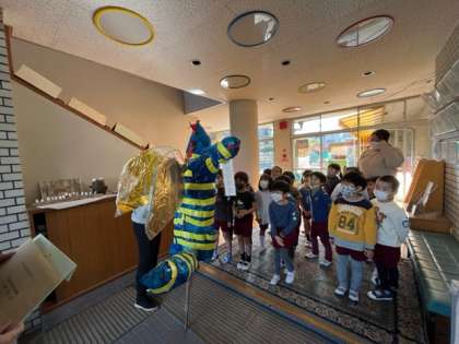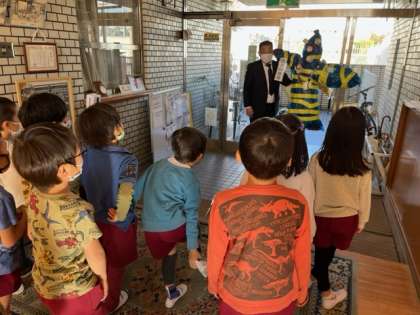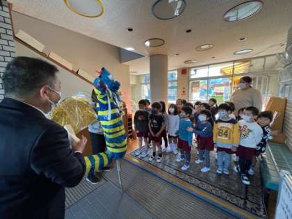 サンダーキングドラゴンを見た瞬間、子どもたちは、思わず「おかえり」と言っていました。住吉大社の御田で頑張ってお仕事をしてきてくれたサンダーキングドラゴンを「頑張ったな」と褒めていました。「田んぼにいてくれたおかげで鳥にお米が食べられなかった」と聞き、喜んでいました。