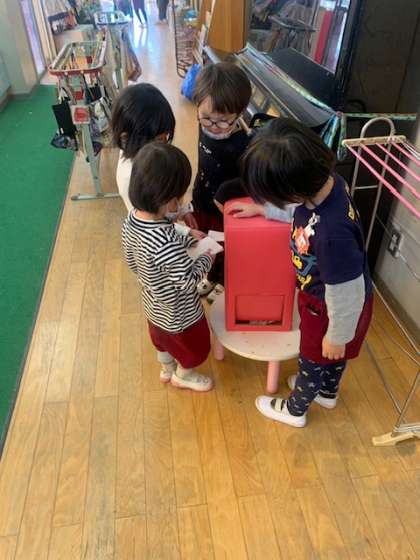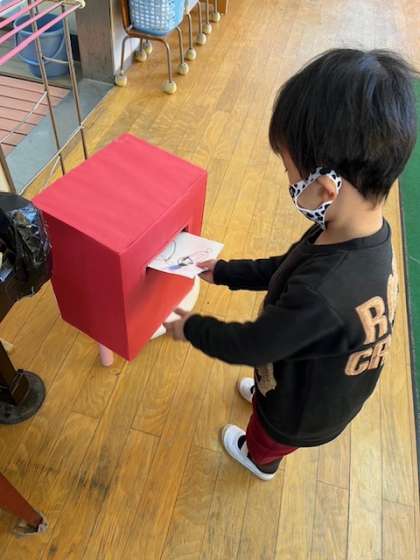 サンタさんからの手紙4 公開日 2022/12/08 更新日 2022/12/10 園の様子 保育室に戻り、みんなで手紙をかきました。「さんたさん、てがみありがとう」「きてくれるのまってるね」心を動かす体験から、イメージがさらに広がり、表現豊かに絵や字をかいていました。 サンタさんからもらったポストへ入れ、満足そうにしていました。 いいね(0)