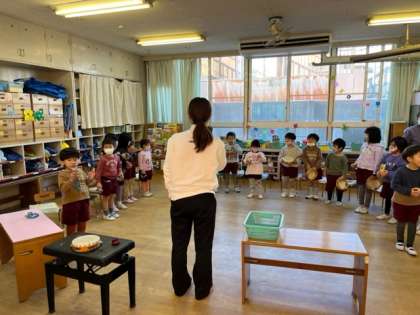 楽器遊び(あか組) 公開日 2022/12/17 更新日 2022/12/17 園の様子 カスタネット、タンブリング、トライアングル、すずを使って楽器遊びをしています。いろいろな曲に合わせて、リズムを打ち、楽しんでいます。楽器の持ち方はどうかな?と持ち方や打ち方を確認して、ピアノの音をよく聞いて、遊んでいます。 いいね(0)