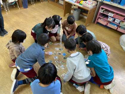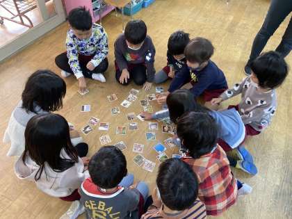 かるた遊びをしました 公開日 2022/12/21 更新日 2022/12/21 園の様子 あお組の子どもたちで、かるた遊びをしました。まずはみんなで、かるたの遊び方や「おてつきしたら一回休み」「一緒に取ったらじゃんけんしよう」など、ルールも確認しました。かるたの場所をしっかり見て、読んでいる声も聞いてと、とても集中して遊び、 全員が札を取ることが出来ました。 いいね(0)