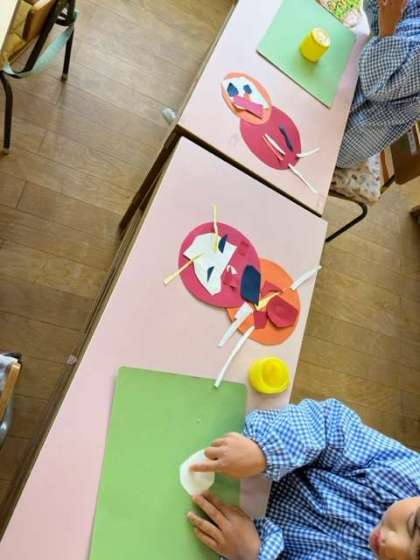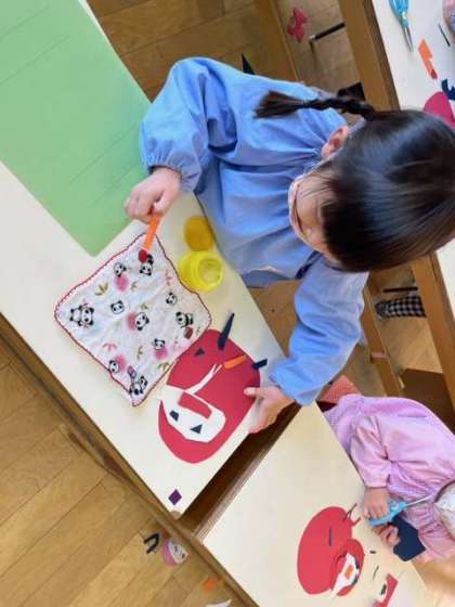 もうすぐお正月が来るので、だるまさんをつくりました。自分で顔をつくり、「上手にできたよ」「可愛い顔にした」と自慢していました。自分だけの素敵なだるまさんができました。