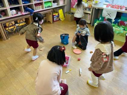 「もも組だけで片付けができる」「見ててね」と、自分たちで?片付けを頑張っていました。友達と協力したり、教えあったりしながらきれいに片付けができました。
