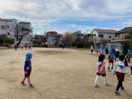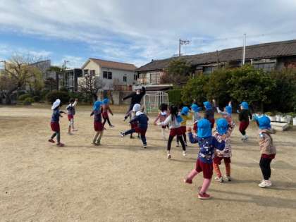 朝のマラソン、体操 公開日 2023/01/11 更新日 2023/01/11 園の様子 朝の冷たい空気の中、みんなで歩いたりマラソンをしたり、体操をしたりしました。終わった頃には身体も温まり、「汗かいた!お茶がおいしいわ!」と、赤い頬をしながら話していました。 これからも寒い日が続きますが、みんなで身体を動かす心地よさを味わっていきたいと思います。 いいね(0)