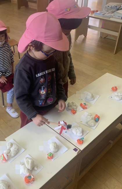 健康であることや「たくさん幸せがくるといいね」と話すと、鏡餅の前で手を合わせて「たくさん遊べますように」「ケンカをしませんように」とつぶやいていました。