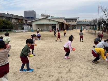 節分遊び 公開日 2023/02/03 更新日 2023/02/03 園の様子 朝から「今日は鬼が来る日やろ?」と、わくわくしながら登園してきたあか組の子どもたち。三方は、好きな色の紙を折ってつくりました。新聞紙を丸めて作った豆を部屋の中や園庭に「おにはーそと!」「ふくはーうち」と、大きな声で言いながら、何度も豆をまきました。まいた豆は拾って、片付けもとても上手にできました。 いいね(0)
