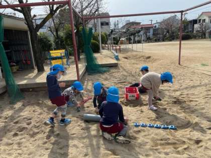 少し暖かいお昼の時間に園庭で元気に遊んでいました。