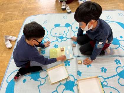 カルタでは、お手つきをしないように慎重になりながらも、日に日に取るのが速くなっています。