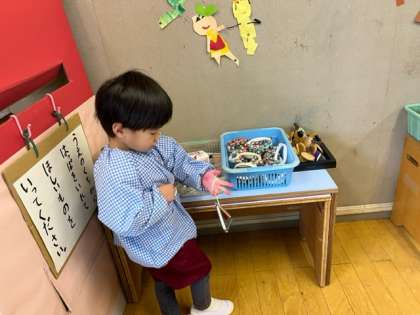 みんなで楽器遊びをしていたことを思い出して、生活発表会のときとは違う楽器を鳴らして楽しんでいました。