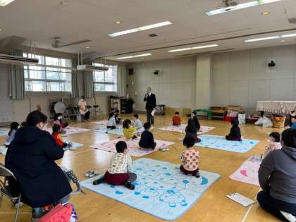 歯磨きの大切さ、年長といってもまだまだ仕上げみがきをして歯が磨けているのかを確かめたり、コミュニケーションをとりながら歯をみがいたりすることの大切さを話していただきました。歯科衛生士さんからは6歳臼歯や歯ブラシの交換などについて話していただきました。