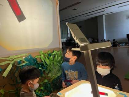 お休みしていた友達の生活発表会をしました。ちょっと緊張していた友達に声をかけ、みんなで2回目の生活発表会を楽しみました。舞台裏のOHPを使って、いろいろなものを写すことも何度も試してうまく見えるように考えてきました。最後の歌では、やりきったという子どもたちの気持ちが伝わってきました。