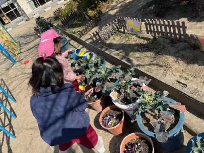 1回目、真ん中の大きいブロッコリーを収穫?した後、横から小さなブロッコリーが大きくなってきています。お水やりも丁寧にあげています。