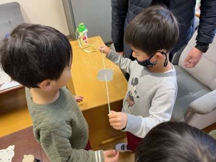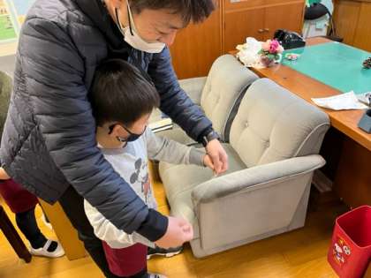 「こっち(職員室)とつながってたん?」「園長室って2つ入り口があったんや」と修了間近になって、2階を満喫しているあお組です。