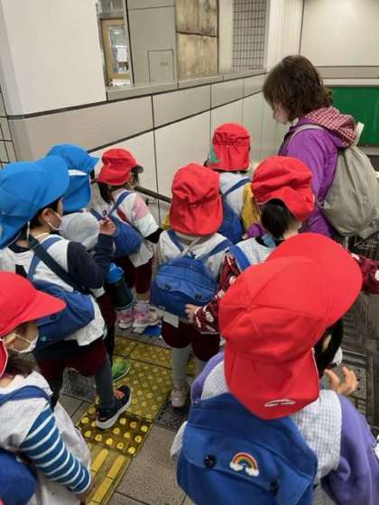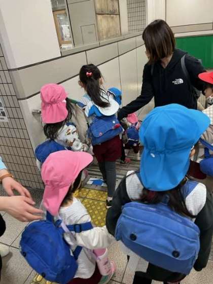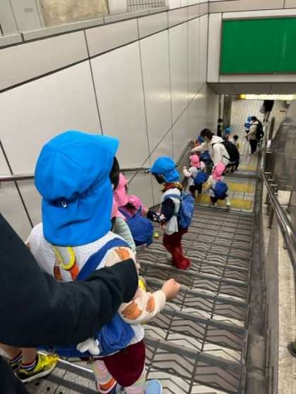 あお組さんに手をつないでもらい、電車の乗り降りや階段も安心して行けました。あお組さんありがとう!