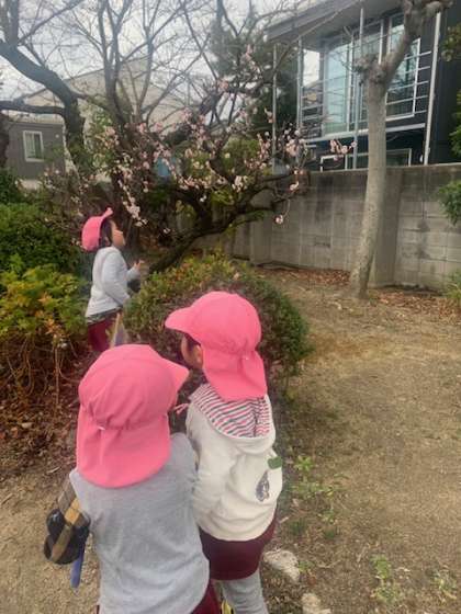 あお組さんがつくってくれた表示のおかげで、梅の花だということがわかりました。