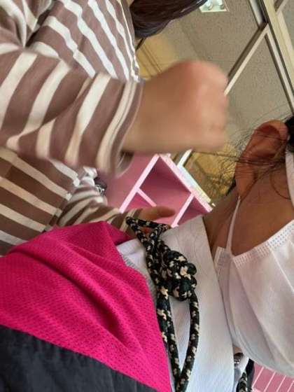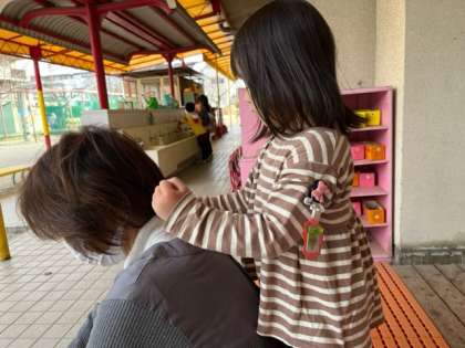前から肩たたきが上手だと聞いていたもも組が、預かり保育で遊んでいるときに、「先生、座って!」「先生、パソコンして疲れた?」と肩をたたいてくれました。とても気持ちがよく、心も暖かくなりました。ありがとう。