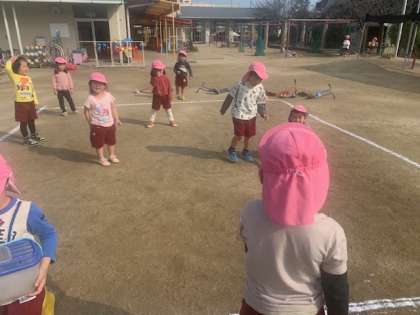 ボールが当たったら外野の人と内野の人が入れ替わるルールが難しかったですが、分かってくると面白く、逃げたり転がしたり忙しそうに楽しんでいました。