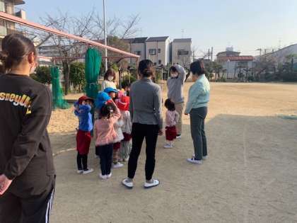 預かり保育の時間に、火災を想定しての避難訓練をしました。放送をよく聞いて、避難できました。どんなときにも、しっかりと話を聞いて、先生と一緒に避難することを話しました。