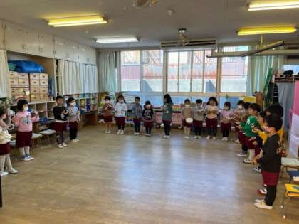 もも組もあか組も、庭で春を見つけ、春の歌を歌っています。1日入園や入園式で住吉幼稚園に来てくれるお友達に聞いてほしいなと、ひとつ大きい組になることを楽しみに、元気に歌っています。