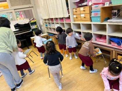 みんなで遊ぼうと、椅子の片付けも自分たちで一生懸命に椅子を運んでいます。
