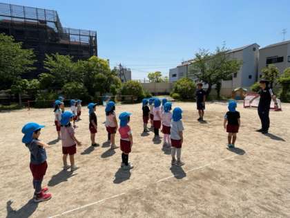 久しぶりにお会いしたコーチに喜び、大きな声であいさつして始まりました。ボールをつかう前にコーチの真似っこをしたりしました。しっかりと話を聞いて、体を動かすことができました。