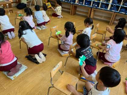 みんながつくったクローバーを飾ると、「お部屋が可愛くなった〜」、「もっとつくって飾りたい!」と、苦戦しながら自分たちでつくったクローバーに大満足でした。
