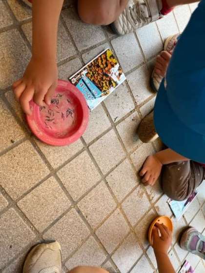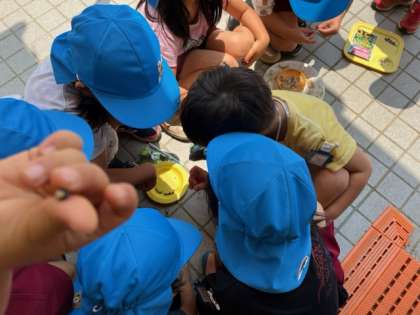 いろいろな花の種を触って、見てみました。「ハートついてるよ」「これは風船かずらやで、知ってた?」と知らせてくれたり、「これは何の種か知ってる?」「正解は…朝顔でした」「こっちは、マリーゴールド」「これはコスモスやって」「同じひまわりやけど、色が違う種がある」と気付いたことをいろいろと教えてくれたあお組でした。