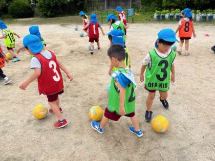 今日を楽しみにしていて、コーチの話をよく聞いて、楽しみました。ボールと向き合い、蹴り続けていました。ドリブルをして、コーチが言った数の人数で集まる時には、ボールを蹴りながら、周りをよく見てドリブルしていました。