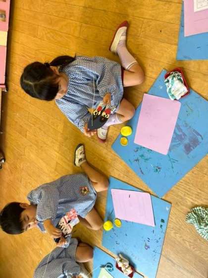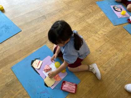 思い思いの顔をした織姫彦星を作りました。ハサミがスムーズに動かせるようになって、思い通りの形が切れるようになり、楽しんで作っています。