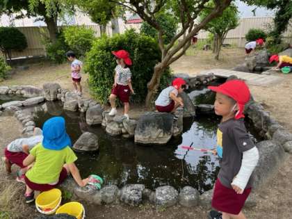 毎日、ザリガニ池に行く子どもが数人います。池の中で動いているザリガニがよく見えるので、子どもたちは楽しんで、ザリガニを探しています。