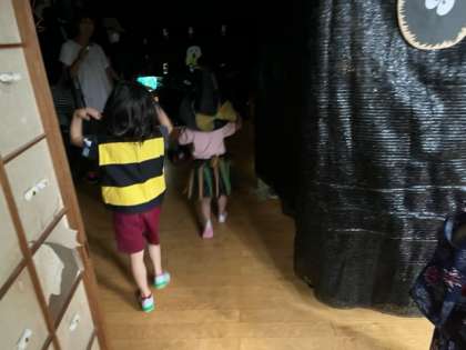 お化けになりきって、遊びに来た人を驚かせていました。暗い様子に怖がっていましたが、楽しんでいる子どもがたくさんいました。
