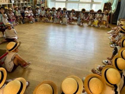 きれいな声で歌っているあお組さんの歌声を聞いて、一緒に歌ったり教えてもらったりして過ごしました。