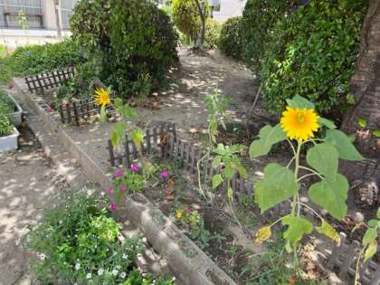 夏休みの園庭 公開日 2023/08/11 更新日 2023/08/11 園の様子 あお組が植えたひまわりが、花を咲かせました。「きれいなお花が咲いてるよ」と、もも組が知らせてくれました。よく見ていますね。 いいね(0)