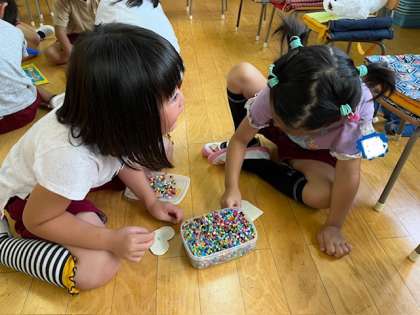 遊びの様子(あお組) 公開日 2023/08/28 更新日 2023/08/28 園の様子 仲良しの友達と久しぶりに会えて、嬉しそうでした。一緒に遊びながら、たくさん話をしていました。 鳴子を保育室に置いておくと、興味をもって、数人の子どもが集まってきました。「これ見た事あるけど、したことないわ〜」「カスタネットみたいな感じ?」と、手に取り、鳴らし始めました。「でもいっぱい鳴らしたら、ちょっとうるさい」と、音楽に合わせて試しながら遊んでいました。 いいね(0)