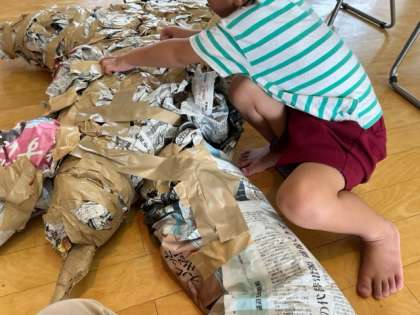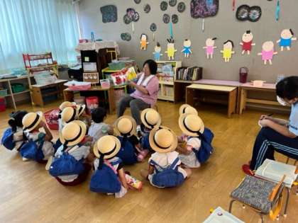 あか組は、「つき」や「ぽんぽこたぬき」の歌をみんなで歌っていました。「元気に歌っていたね」と声をかけると「歌名人だから」と笑顔で、自信をもって答えてくれました。また楽しく歌っていきたいですね。