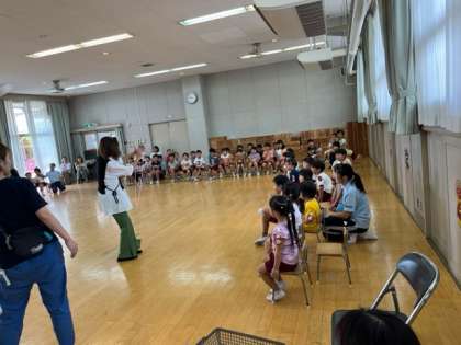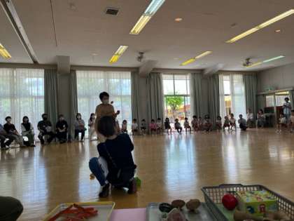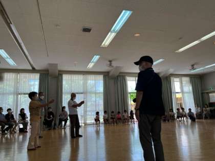 リズム室では歌を聞いていただいたり、一緒に歌ったり、歌をプレゼントしたり、体操を見てもらったりしました。おじいちゃんおばあちゃんからはお手玉、あやとり、けん玉、こま回しなど、昔からある遊びを披露していただきました。とても上手で、子どもたちもビックリ!していました。また真似っこして遊んでみたいですね。