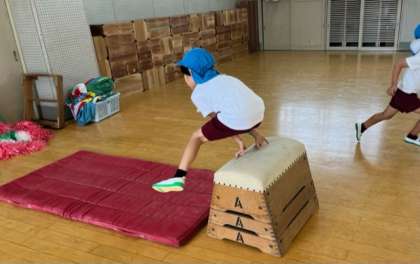鉄棒、ペダルローラー、跳び箱にも挑戦し始めています。