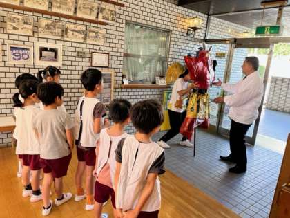 カカシ『おばけおに』 公開日 2023/09/25 更新日 2023/09/25 園の様子 住吉大社さんの御田に立てていただくかかしの『おばけおに』をお渡ししました。 カラスが怖がるようにキラキラのテープがついていること、お米が食べられないように怖い顔をしていることなどを伝えました。 「こんなに怖い顔をしていたら、鳥も近づけないね!」「田んぼに立てておくね」と言っていただきました。子どもたちは「田んぼに立っているところも見に行きたい」と楽しみにしていました。 いいね(0)