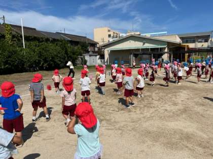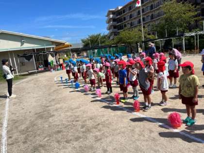オープニングや開会式、体操やかけっこをみんなでしました。「もうすぐ運動会やんな」と、一生懸命に頑張る子どもたちでした。おうちの方々に見に来ていただくことを、とても楽しみにしています。