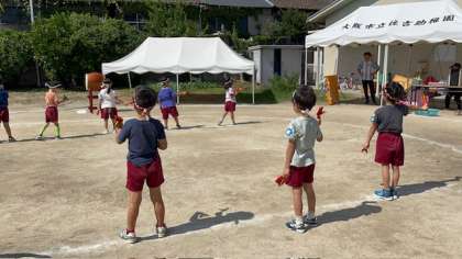 鳴子を使って踊ったり、リレーで力いっぱい走ったりしました。