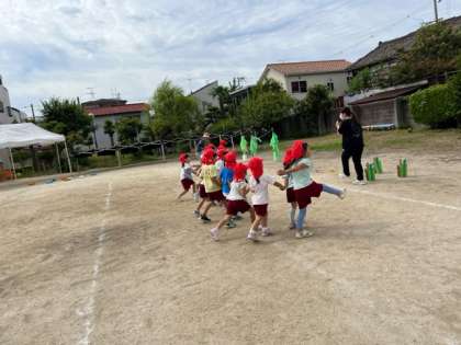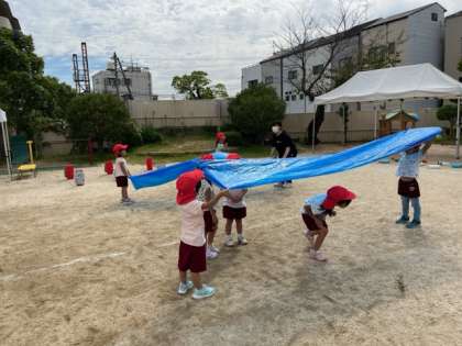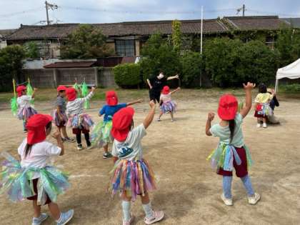 海の世界では、波になったり、魚になったり、南に島の人になったり、大忙しだけど、楽しんで表現し、楽しんで体を動かしているあか組です。