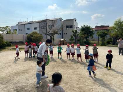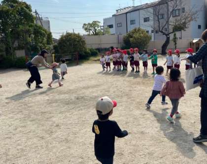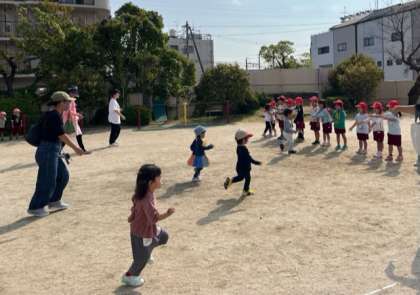 あか組さんがゴールで待っていて、「おいで!」と呼んでくれていました。未就園児さんも元気いっぱいに走っていました。「ぎゅーとしてくれました」と喜んでくれた未就園児さんもいました。