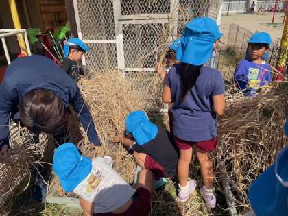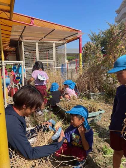 住吉大社さんからいただき、あお組が大事に苗から育ててきたお米の稲刈りをしました。