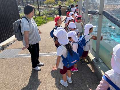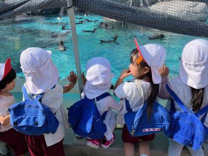 どんな動物がいるかなと楽しみにして入園しました。ペンギンが泳いでいる様子が見られて、大喜びでした。「こんなふうにして歩いているね」と真似をしていました。