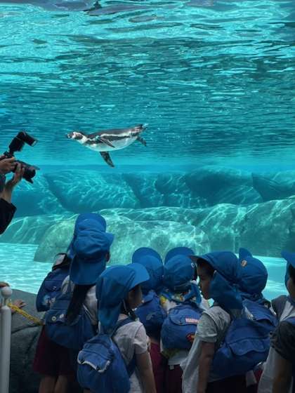 外でおにぎり弁当も美味しく食べて、お昼からもスイスイ泳ぐペンギンやダイナミックに飛び込むホッキョクグマなど見て回りました。